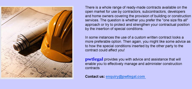 pwtlegal provides you with advice and assistance that will enable you to effectively manage and administer construction contracts.