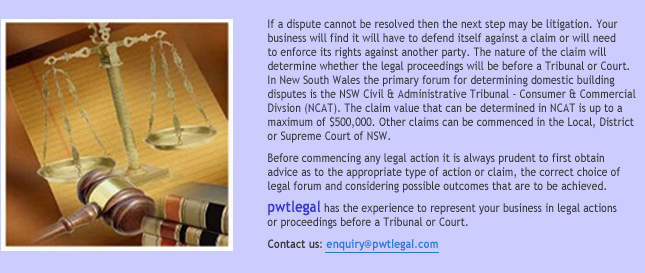 pwtlegal has the experience to represent your business in legal actions before a Tribunal or Court.